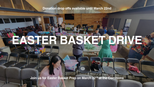 Once the items are in, the real fun begins! Join us in the Commons on Sunday, March 22nd, immediately following the 11am service. We’ll be gathering as a community to assemble the baskets and pray over the families who will receive them. Don't miss this wonderful opportunity to be a blessing to local kids!